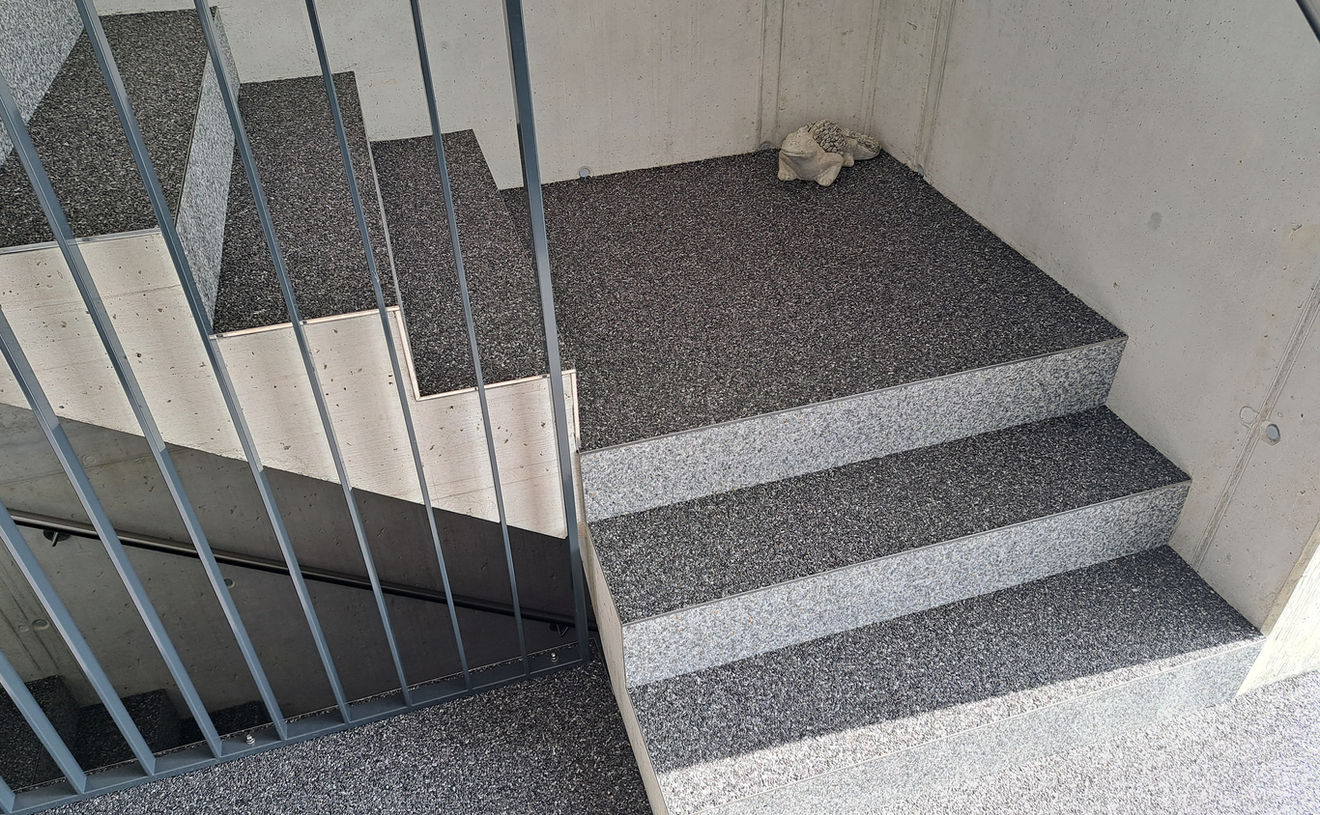 Unsere Steinteppiche können auch bedenkenlos auf Vorplätze und Gehwege im Aussenbereich angewendet werden und bieten einen optischen Mehrwert. Da es im Aussenbereich besonders auf einen sicheren Tritt ankommt, ist dies eine Möglichkeit Ihren alten Eingangsbereich, Vorplatz oder Gehweg wieder ansehnlich, rutschfest und sicher zu machen. Feuchtigkeit und Frost verwandeln Gehwege und Vorplätze in gefährliche Rutschbahnen und werden so zur Unfallgefahr. Der Steinteppich hat von Grund auf durch seine offenporige Oberfläche eine hohe Rutschfestigkeit. In Bereichen mit erhöhter Anforderung an die Rutschfestigkeit, kann nachträglich eine Antirutschbeschichtung mit der erforderlichen Rutschhemmklasse aufgetragen werden.